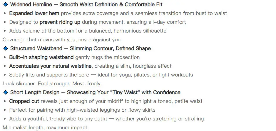 With a sleek, short-fit design that enhances natural shape, this top delivers both style and practicality for studio or everyday wear. Whether you're flowing through poses or pairing it with casual athleisure looks, this elegant sports top brings a perfect balance of comfort, support, and modern finesse. Want me to rewrite it based on the exact specs? Just paste them in.