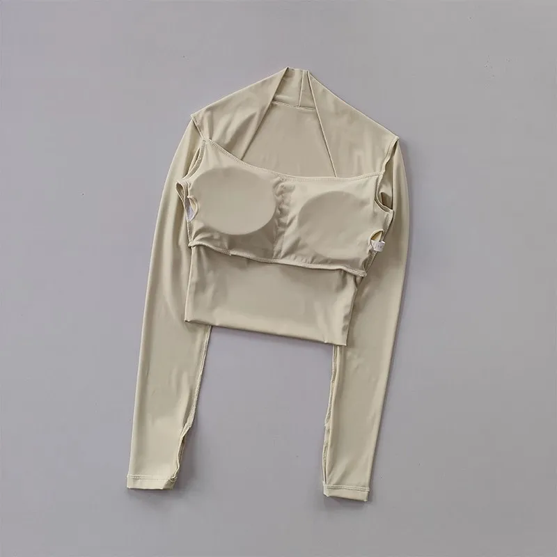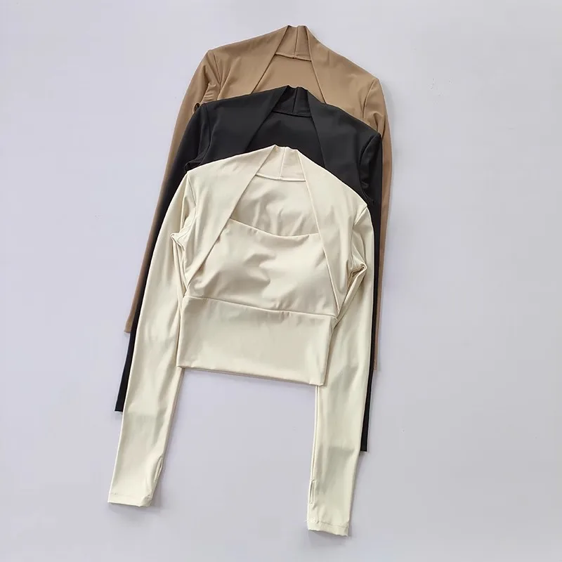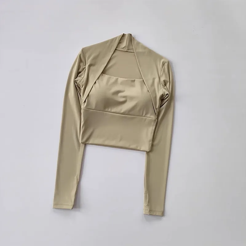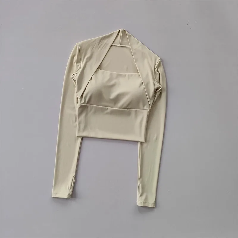 French-Style Faux Two-Piece Long Sleeve Yoga Top – Effortless Elegance Meets Modern Comfort
