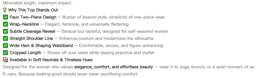 Introducing the French-Inspired Faux Two-Piece Long Sleeve Yoga Top — where timeless sophistication meets contemporary activewear design. Crafted for women who embrace grace, confidence, and refined style in every movement, this top redefines what it means to feel beautiful during your yoga session, morning stretch, or casual outing.